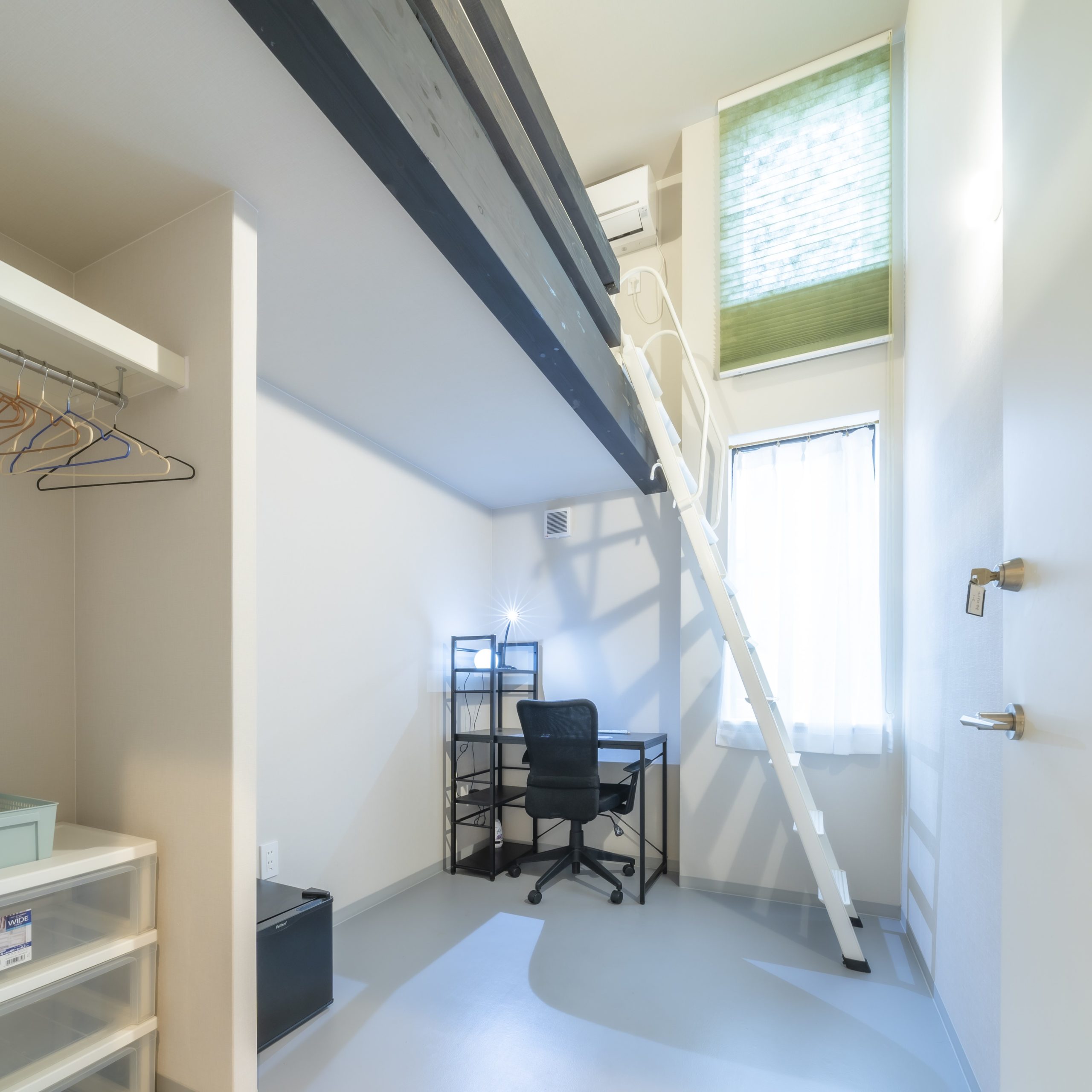 In this way, the entire area of a private room can be used for “personal living space” in a shared house. Flat Bolero Jodoji’s private room has 1.5 floors’ ceiling height (4.5m) with a loft (bed space). This separated layout would help to use the living space more neatly. It would be a smarter choice for those with a simple lifestyle!